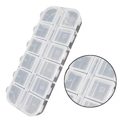 Con 12 compartimentos separados, es fácil encontrar y acceder a tus strass, joyas, fimo, confeti, glitters, etc.