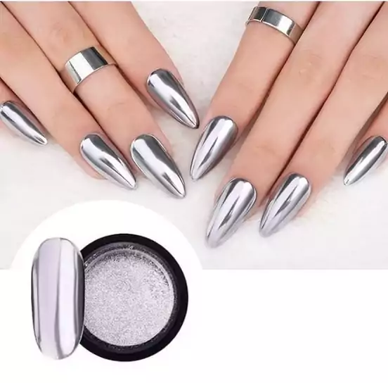 Transforma tus uñas en verdaderas obras de arte con el Polvo Espejo Plateado.