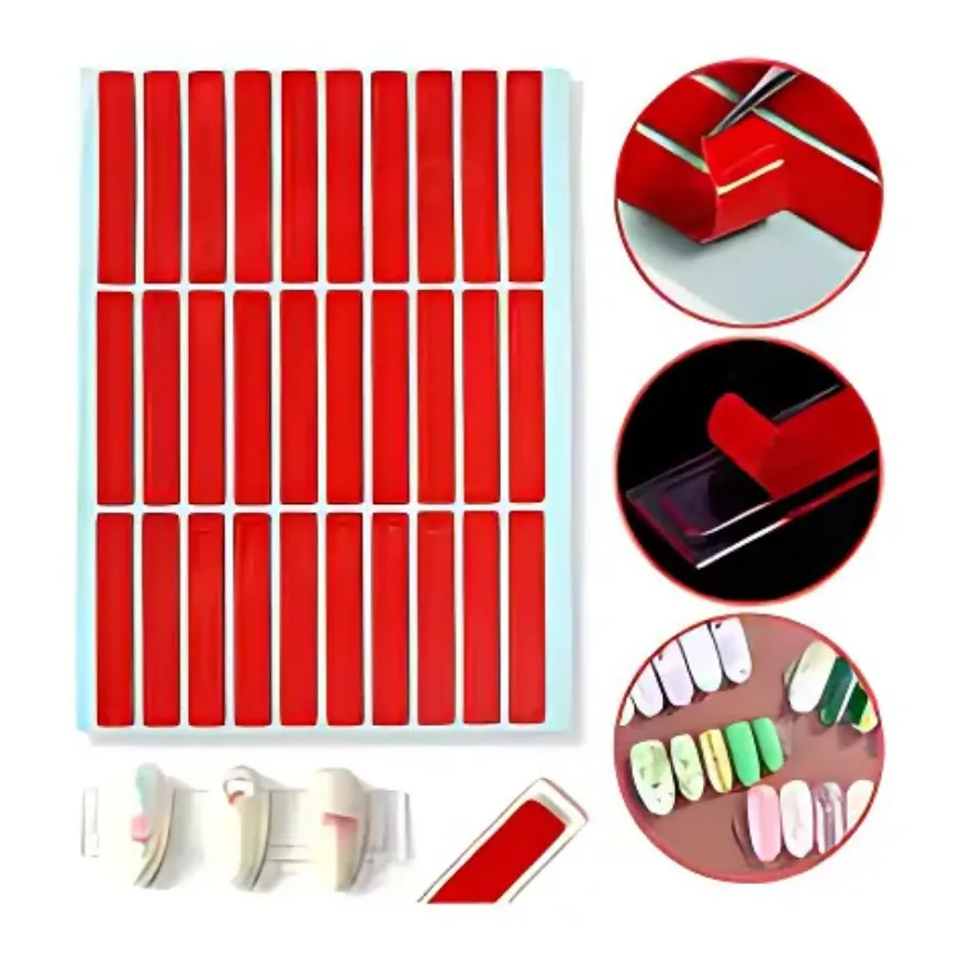 Tiras adhesivas doble faz precortadas: fijá tips y muestrarios en segundos. Limpio, rápido y prolijo.